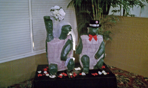 Froggy was wearing a beautiful green ring, and when the red lights hit it, the eye would interpret the colour mixing as a bright yellow flash. Pretty neat stuff! And yeah, what a great time.